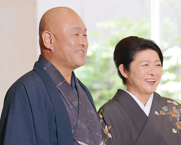 造った庭が少しずつ落ちつき、自然と融合しつつ、常に変化をしながら成熟していくかのように、お二人の着物姿も周囲の景色や雰囲気に溶け込んで、美しく見事に円熟していました。