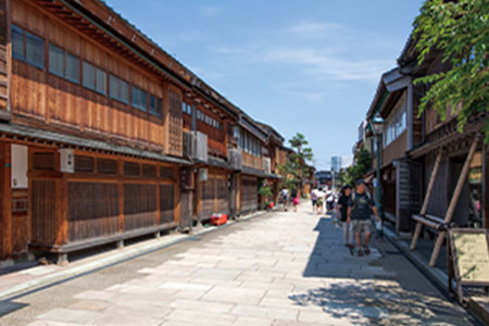 昔ながらの土塀や石畳の小路が残り、豪壮な武家屋敷が立ち並ぶ長町武家屋敷跡。冬になると町並みの土塀を雪や凍結から守るために「こも掛け」が行われ、金沢の冬の風物詩を見るために観光客が 訪れます。