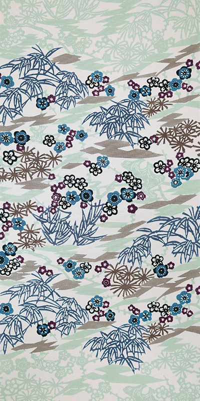 「紅型は淡いグラデーションではなくて、寒色系の隣に暖色系をもってきたり、違う色が隣り合わせになって鮮やかに散らしていくのが魅力です」という西田さん、色と色が組み合わさることでどう魅力的になるのか?ということを常に見ているのだそうです。 「栗山らしい基本ルールを守りながら、時代に合った色を足したり、引いたりしています。同じ型で染めても、色を変えたり、素材を変えたりすることでまったく別の作品が生まれるんです。これが紅型の醍醐味かもしれません」