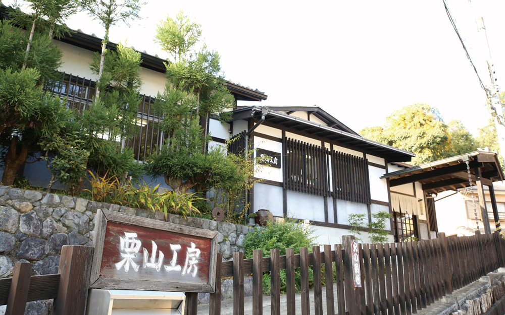 住宅街の路地の奥にある栗山工房。この石垣も、工房のさまざまな部分も大箭さんが自身で作ったそうです。
