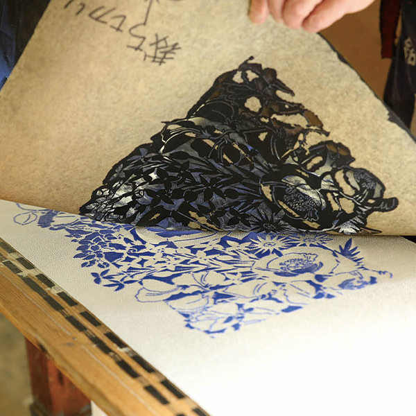 図案から型を彫る西田さん。型は消耗品なので、丁寧に扱ってもいつかは破けてしまいます。人気の型は何度か彫ることもあるそうです。