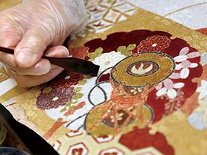 加賀友禅以外の友禅には金彩、刺繍、絞りが施されます。