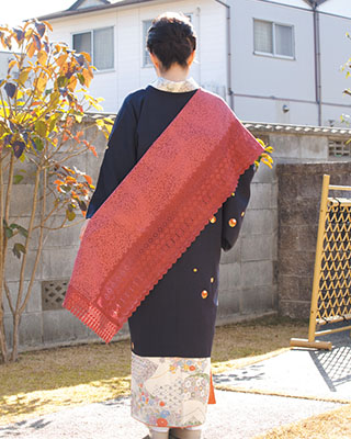 ショールやコートは、⽻織と違って着⽤したまま室内には⼊れませんので、⼾外での着脱の機会がとても多くなります。