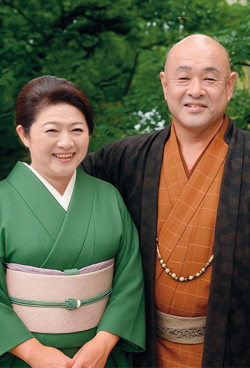造った庭が少しずつ落ちつき、自然と融合しつつ、常に変化をしながら成熟していくかのように、お二人の着物姿も周囲の景色や雰囲気に溶け込んで、美しく見事に円熟していました。