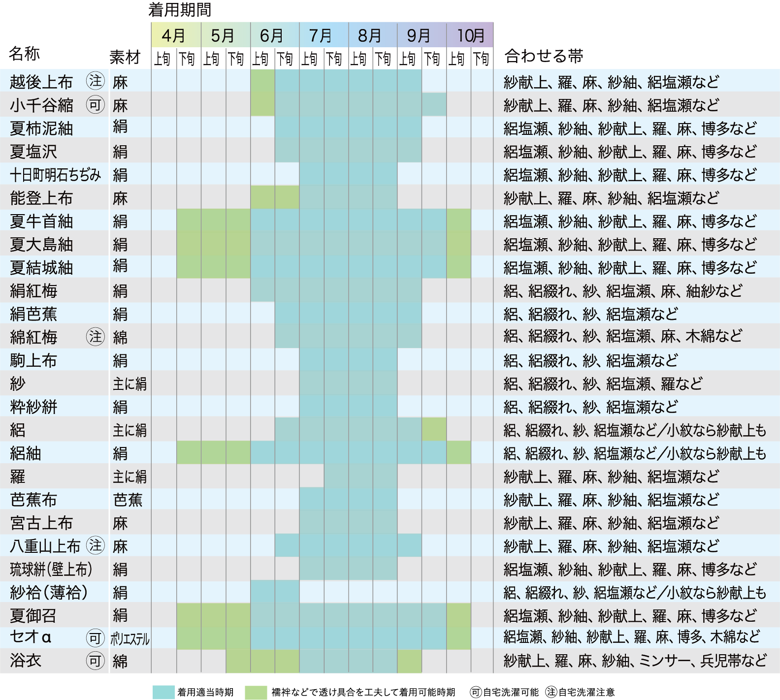 おしゃれ物なら自分の体感に合わせて好きな物を着用しても良いとされる時代ですが、4月、5月の真夏日などに、真夏の着物を着用するのはチョット気が引けます。そんなときには濃地の長襦袢を着ると、着物の透け感がほとんど目立たなくなり、体感的には夏の着物ですから快適に過ごすことができます。
